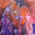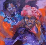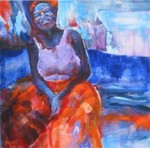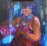 2007vrouw in feestkledij uit Gambia, ingelijst.